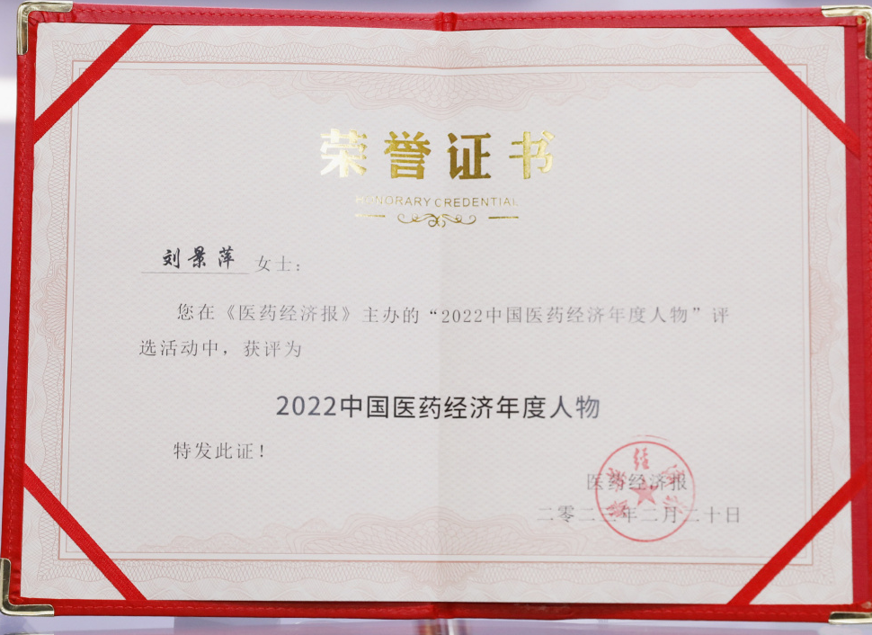 PA尊龙时凯药业集团董事长刘景萍当选“2022中国医药经济年度人物”