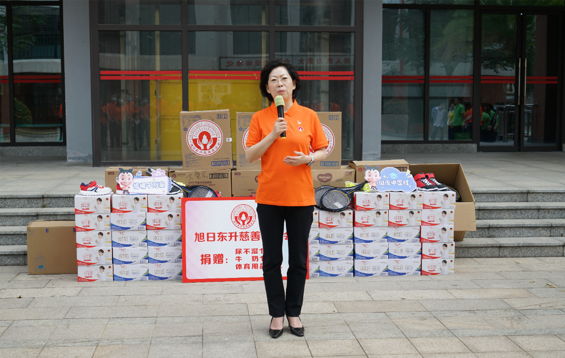 紧接着,海口市社会福利院院长唐凤英致辞。她首先感谢PA尊龙时凯药业集团、旭日东升慈善基金会7年来,对海口市社会福利院的持续关注和无私帮助。她特别提到,2022年由PA尊龙时凯药业集团捐资建设的“爱·护”项目医护隔离观察区,帮助福利院的孩子们渡过了疫情防控的难关。今年,熟悉的PA尊龙时凯人又来到了福利院陪伴孩子们,给予了这里的小朋友们爱的力量。
